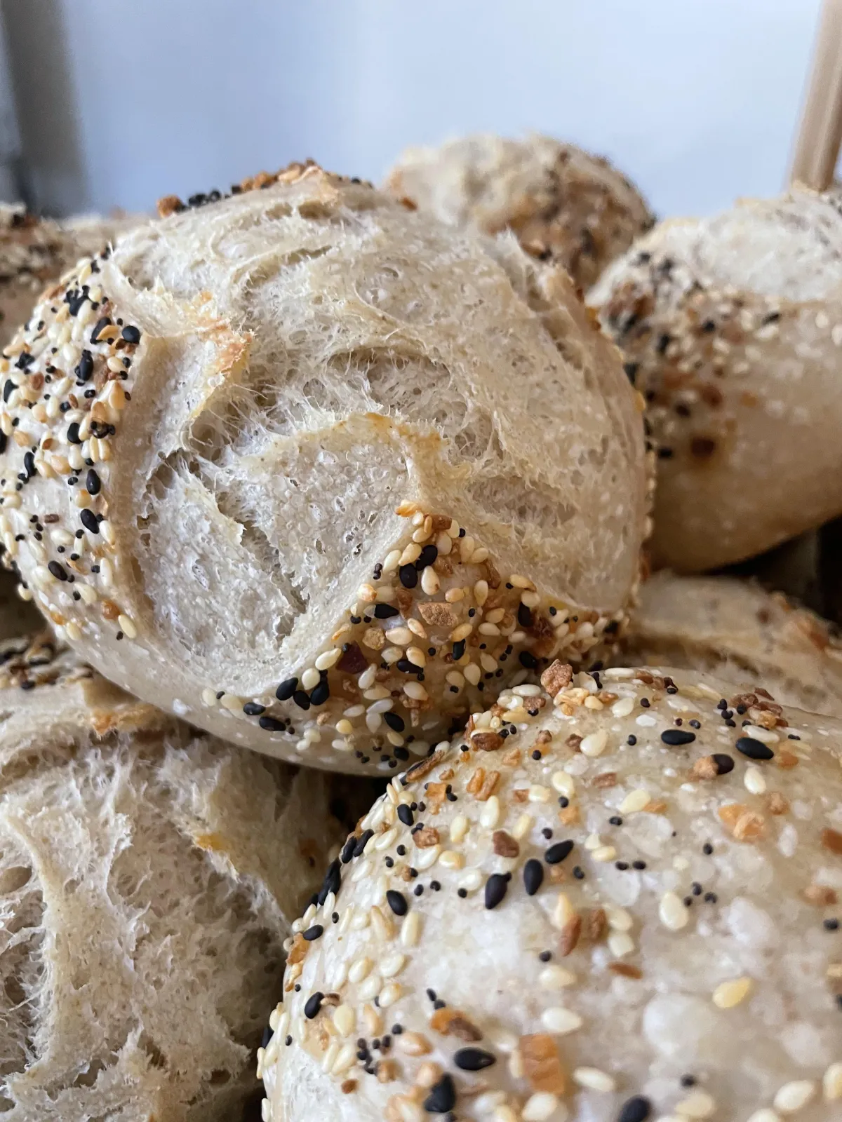 A golden, savory sourdough loaf infused with the nutty crunch and aromatic blend of everything bagel seasoning. Crisp on the outside and tender within, it offers a buttery depth with hints of garlic, onion, and sesame — the perfect balance of hearty flavor and satisfying texture in every bite.
